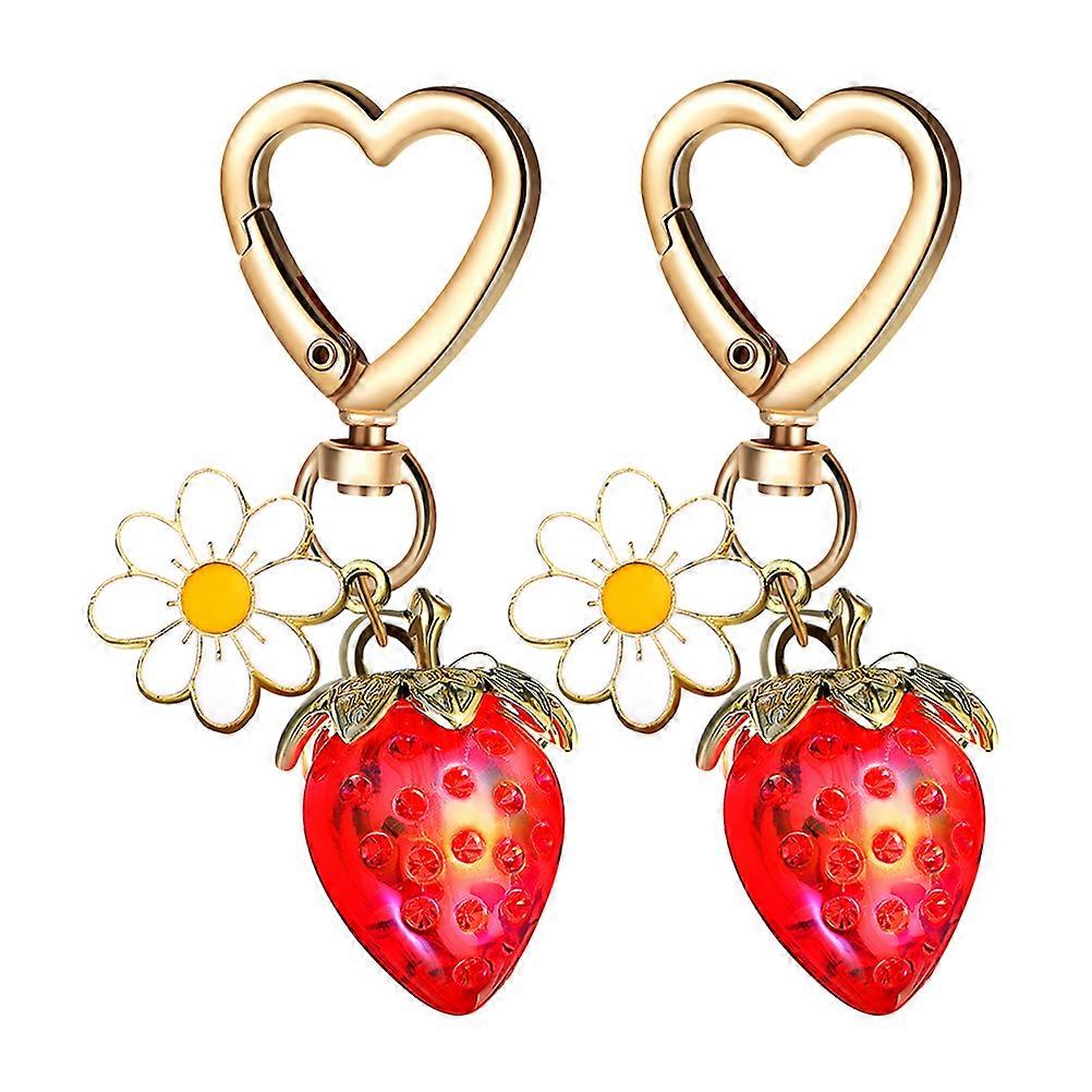 Cute Strawberry & Flower Keychain with Heart Shaped Ring Charming Metal Pendant for Women, Stylish Bag Accessory & Daily Use Decorative Keyring