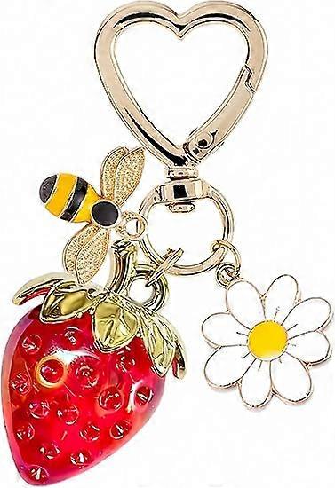 Cute cherry strawberry bag charm keychain wallet accessories charm ladies handbag kawaii flower car keychain