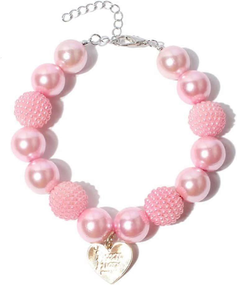Cute Teddy Dog Pearl Necklace Pink Heart Pendant Pet Collars Dog Clothing Accessories Small and Medium-Sized Dog Collars