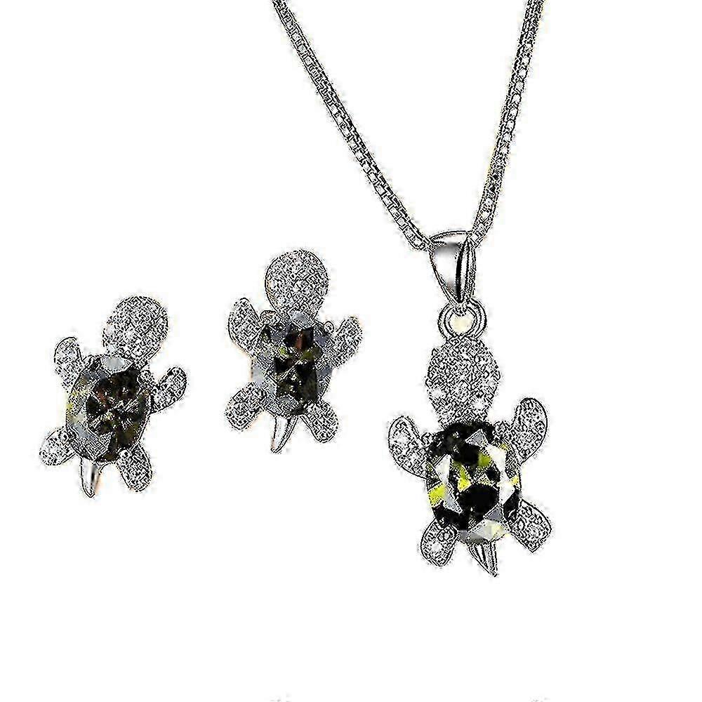 Cute Tortoise Crystal Pendant Necklace Earrings Jewelry Set For Women Girls Valentine's Day Gift