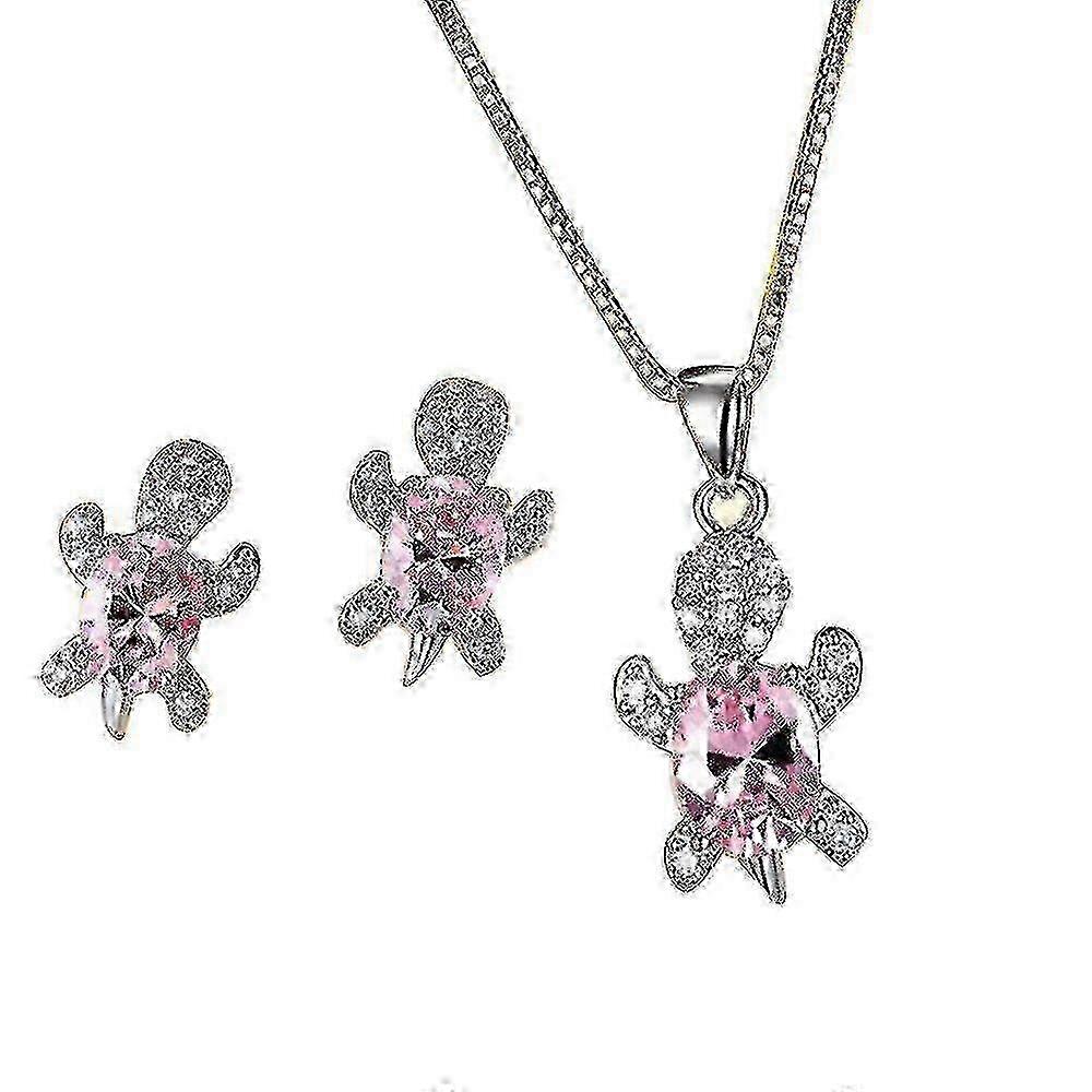 Cute Tortoise Crystal Pendant Necklace Earrings Jewelry Set For Women Girls Valentine's Day Gift