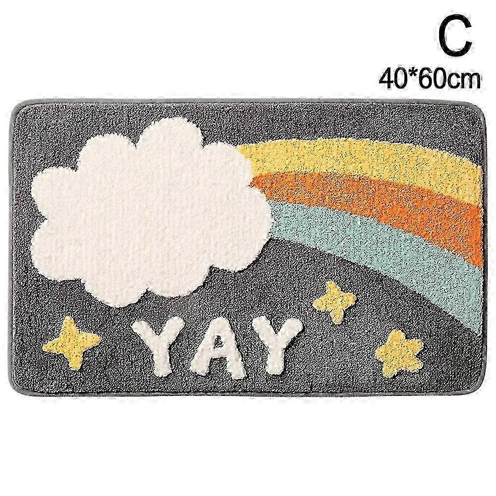 Material: Polyester fiberSize:40X60 cm /15.75X23.62 inches ,50X80 cm /19.69 x31.5inchesColor:as picture 1.Vivid design: This floor mat uses a rainbow design, bright colors, giving people a pleasant feeling. The rainbow pattern is deeply loved by children and can create a pleasant playing environment for children. 2.Lovely and simple: The design of the floor mat is simple and lovely, there is no complicated pattern and pattern, only a simple rainbow pattern, giving people a clean and fresh feeling. This design makes the floor mat suitable for a variety of decorative styles of the room, will not be obtrusive. 3.High quality materials: The floor mat is made of high quality materials, very soft and comfortable, giving people a feeling of stepping on the cloud. The material is durable and reliable, easy to clean and maintain, and suitable for long-term use. 4.Strong water absorption and pollution resistance: This mat is made of high-quality absorbent materials that quickly absorb moisture and keep the floor dry. At the same time, it also has excellent anti-contamination function, can prevent liquid penetration, easy to clean and maintain. 5.Multiple uses: This floor mat is not only suitable for stepping on, but can also be used as a seat cushion, a play mat or as a decoration beside the bed. Whether placed in the bedroom, living room or children's room, it can add some energy and color to the space.NOTE1. As we all know ,the different computers display colors differently,the color of the actual item may vary slightly from the following images.2. If you feel difficult to choose the size ,you can feel free to contact mewe will give you some suggestion,but it is for you reference only.Package include: 1 pcs* floor mat<br> Note: Due to the light and screen setting difference, the item's color may be slightly different from the pictures. Please allow slight dimension difference due to different manual measurement. Sold by-Minnanxin
