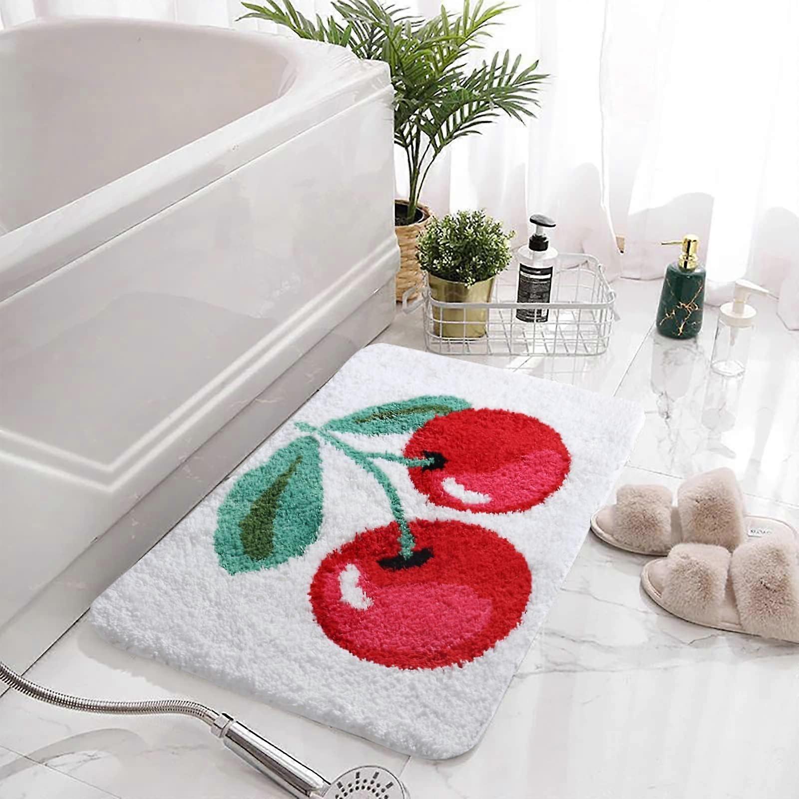 Cute Bathroom Rug 20x32, Thick Soft Microfiber Non-Slip Cherry Shaggy Bath Mat, Machine Washable for Shower and Sink
