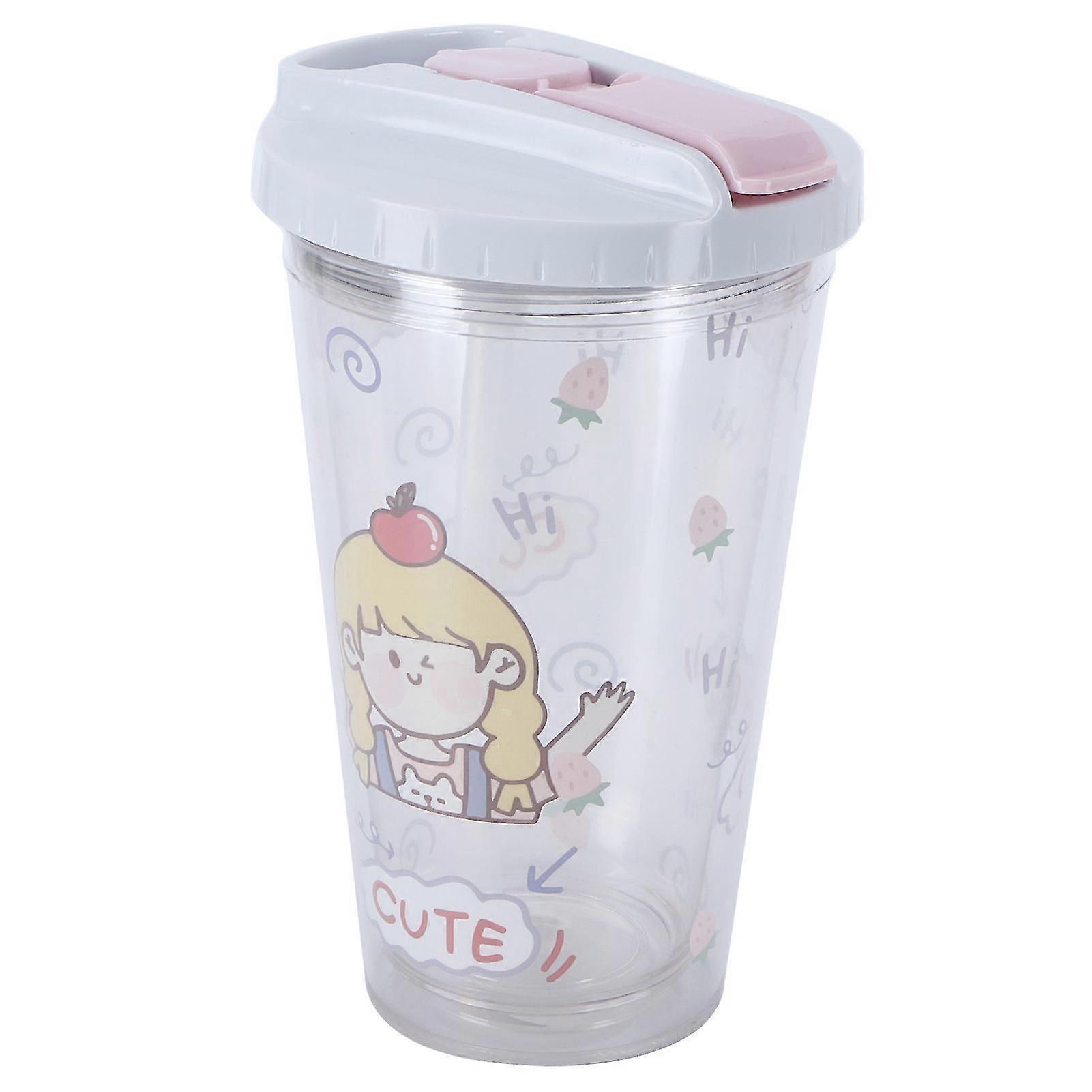 Cute Pattern 450ml Insulated Water Bottle Straw Lid cartoon Girls Friendly