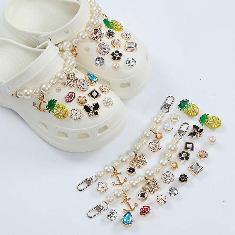 Cute pearl pineapple detachable shoe flower (excluding shoes), chain charm decoration, sparkling charm, ladies' birthday party gift