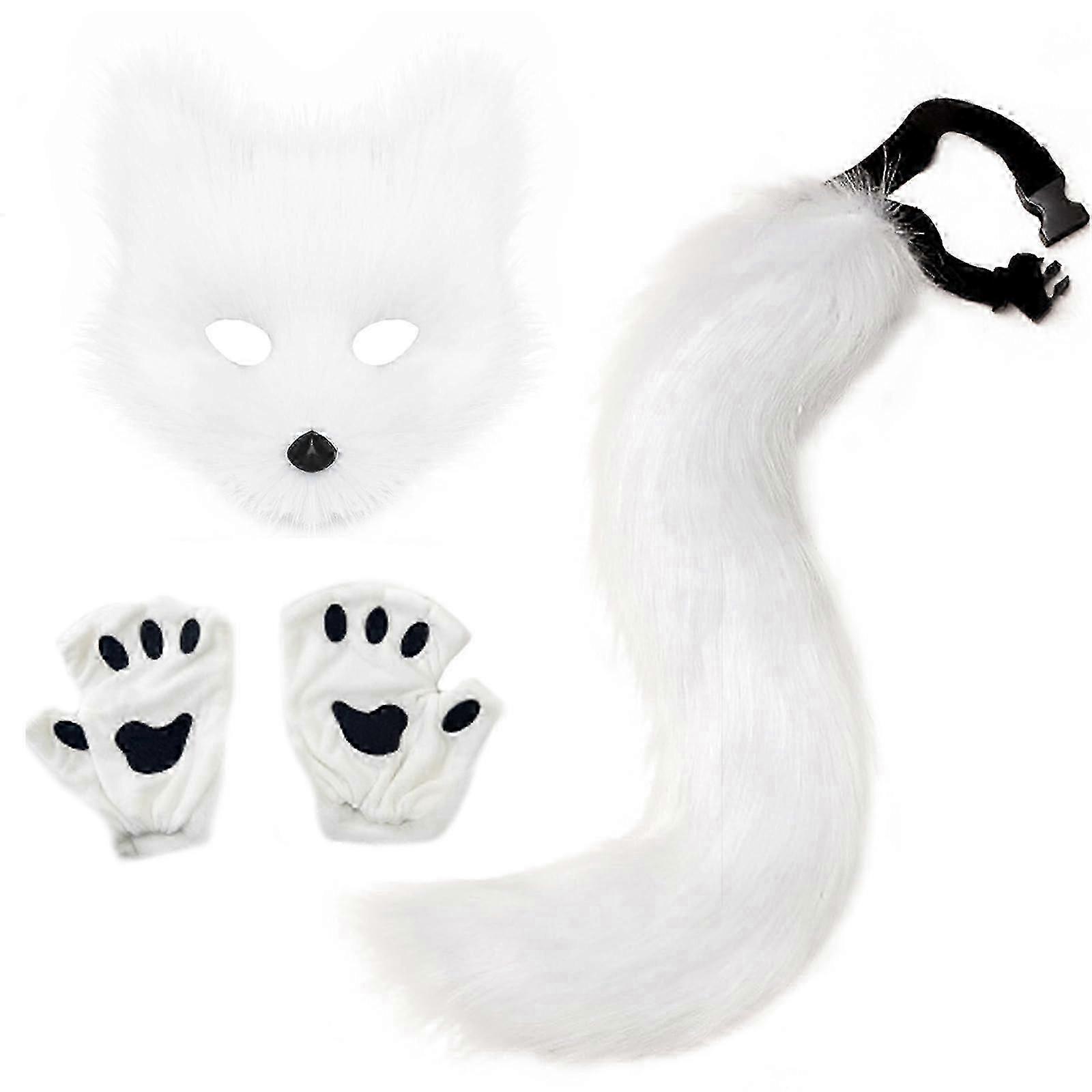 Cute Faux Fur Fox Tail Cat Wolf Cosplay Costume Set Plush Mask Fluffy Paw Gloves New