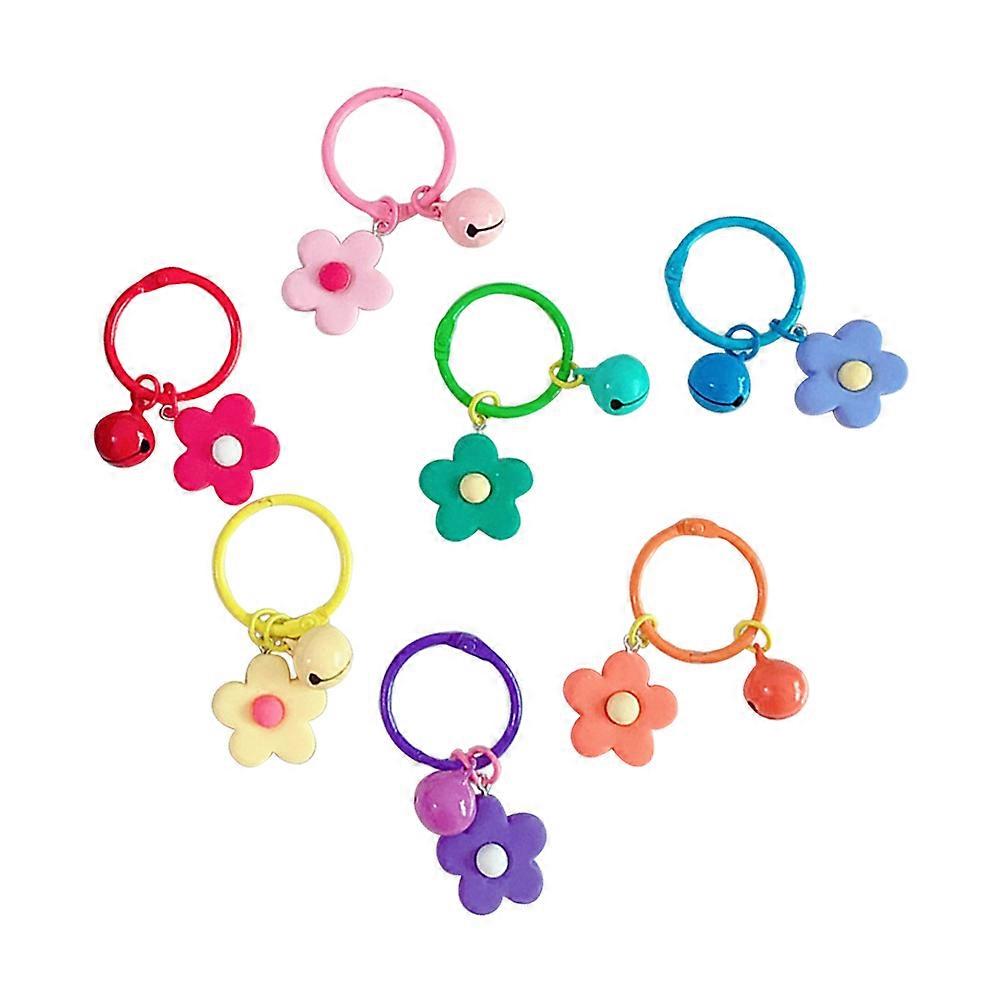 Cute Flower Keychain Macarons Flower Key Rings Bag Women Pink 5.2x3x1cm 7Pcs