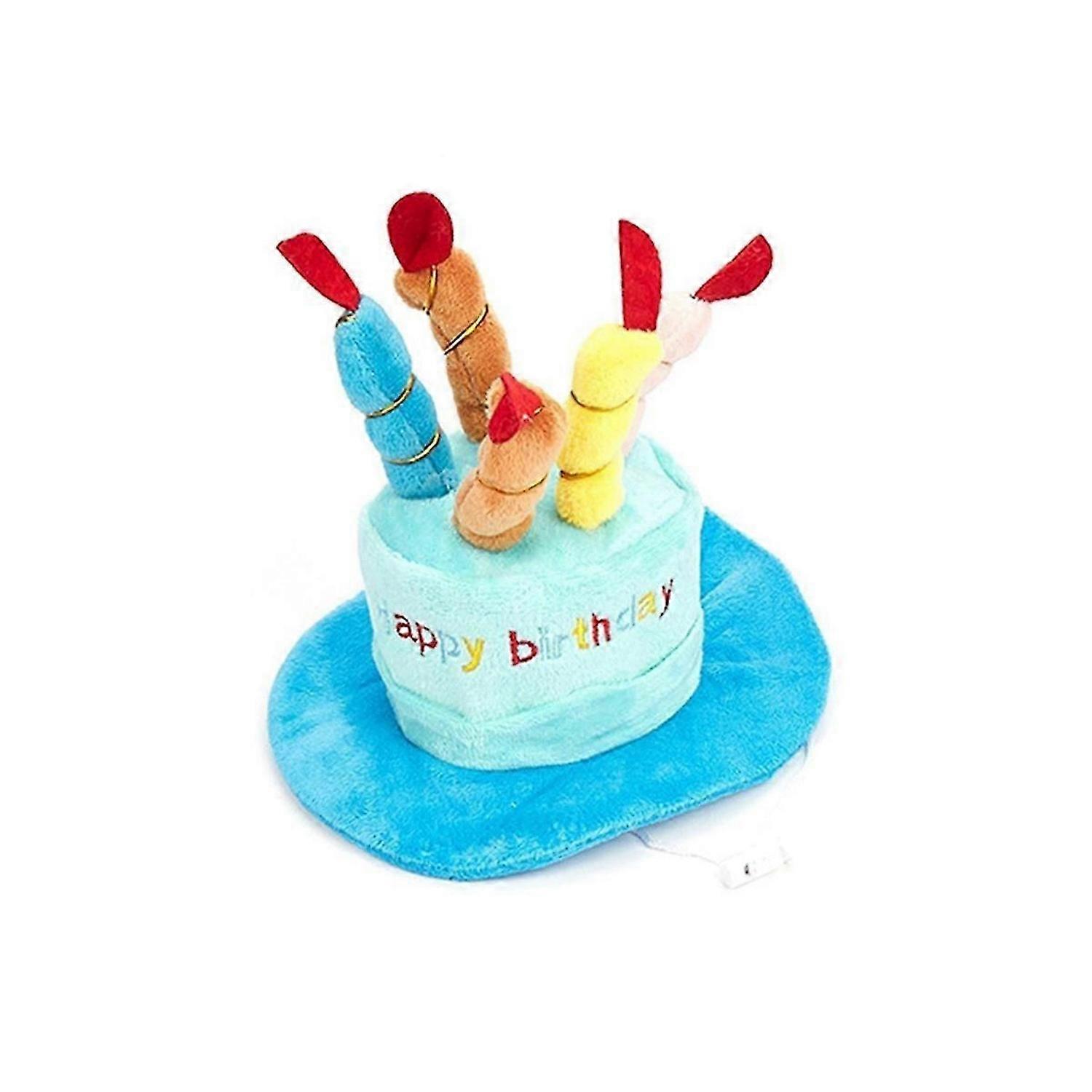 Cute Pets Dog Cats Birthday Caps Adjustable Colorful Candles Dog Hat Puppy Cats Cosplay Costume Headwear Blue