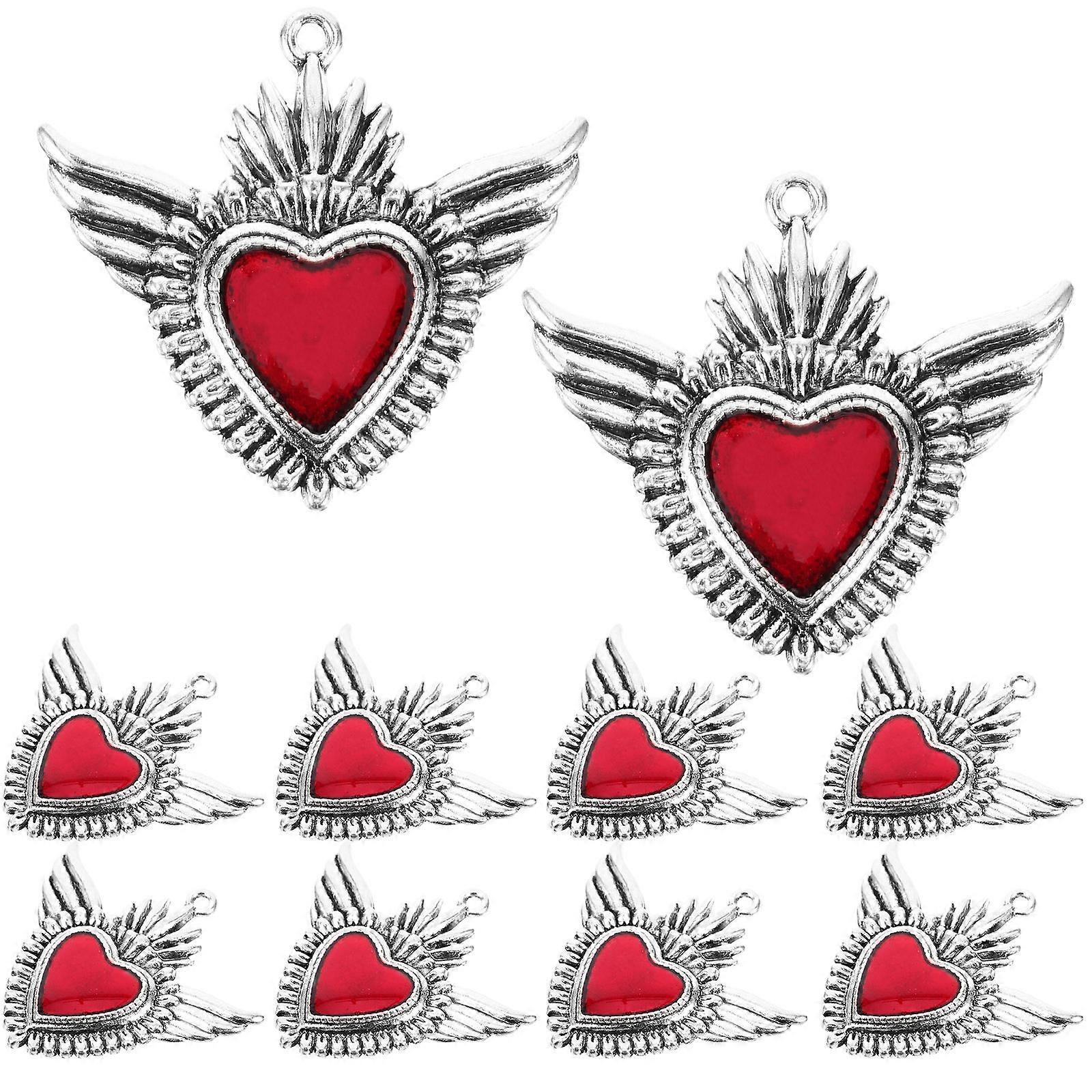 Cute Pendant Charms Heart Shaped Pendants for Jewelry Making Alloy Material 10Pack