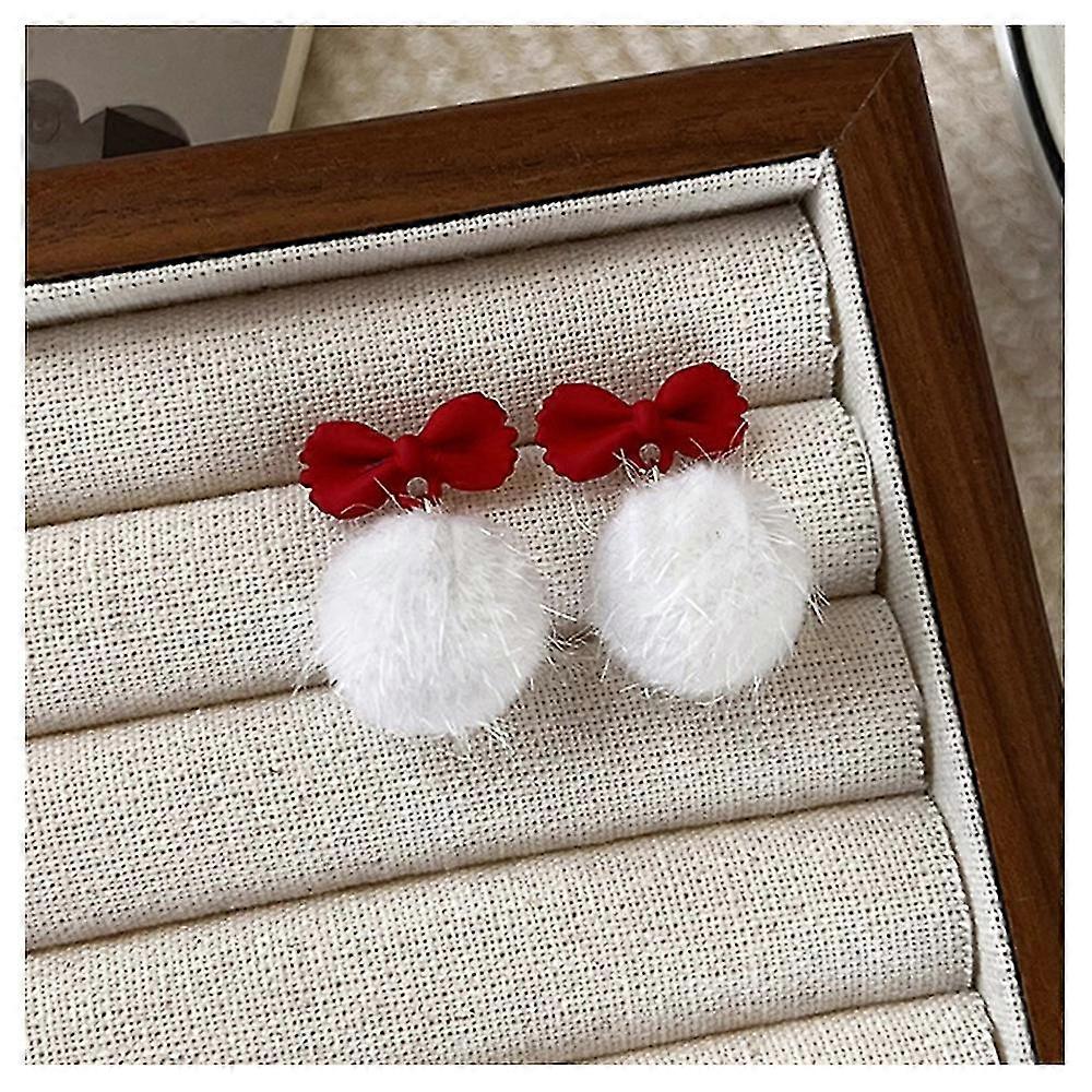 Cute Bowtie Earrings Ornaments Fade Resistant Jewelry Plush Ball For Bussiness Commute Dating Shopping