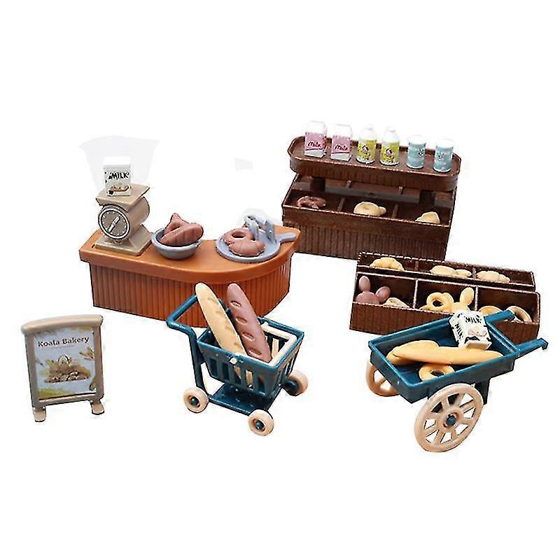 Cute Mini Bakery Decoration Simulation Shop Milk Bread Trolley Children Play House Toys Decoration