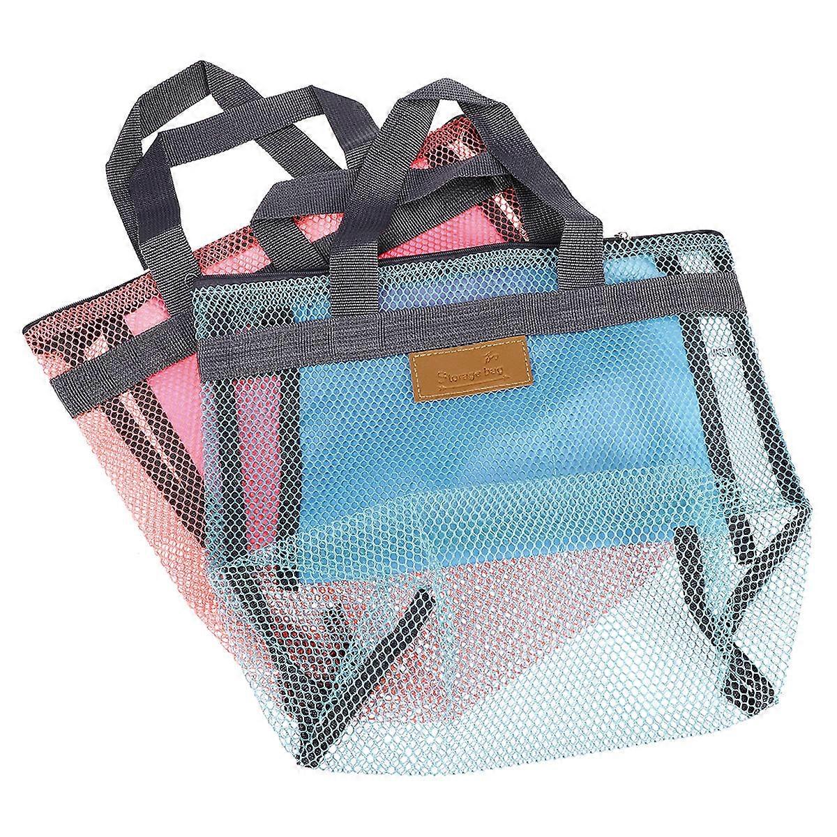 Cute Mesh Beach Bag Cosmetic Bag Unisex For Beach Gym Dorm Family Activity Pink 2Pcs