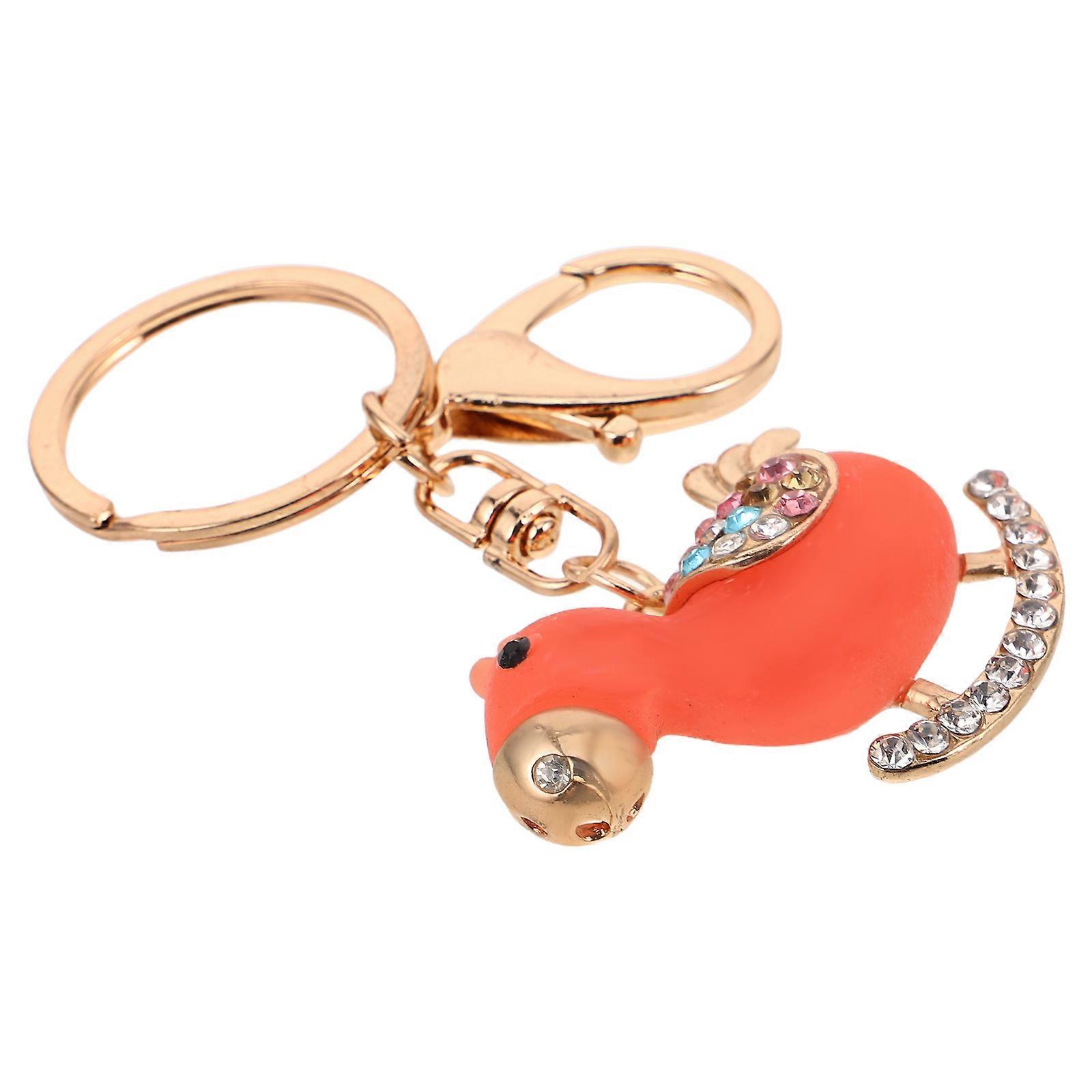 Cute Rhinestone Keyring Zodiac Animal Charm For Purse Handbags Everyday Use New Year Pink Zinc Alloy 1Set