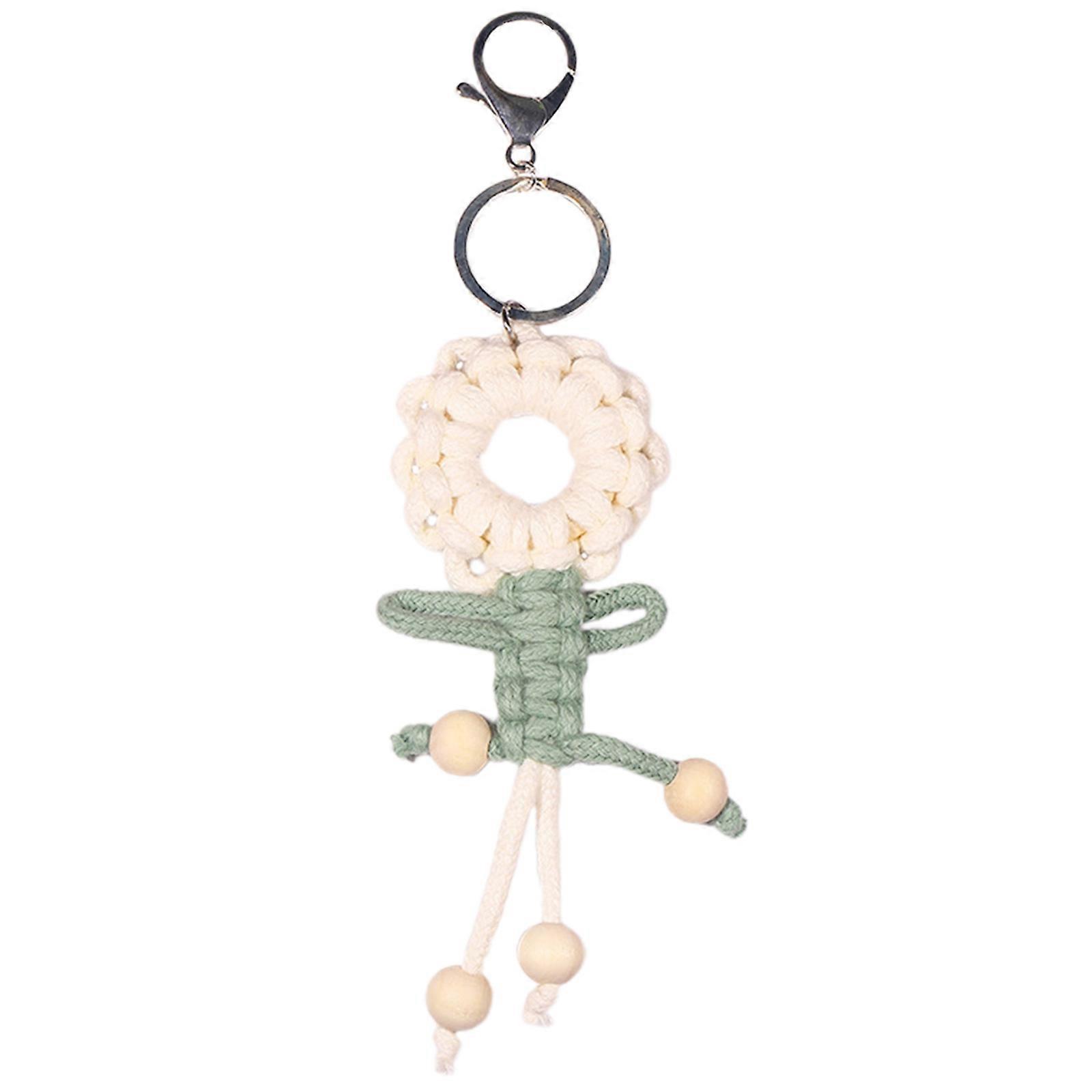 Cute Lobster Clasp Keyring Small Fresh Hand-Woven Flower Beads Pendant Keyholder Headset Pendant Decoration for Women White