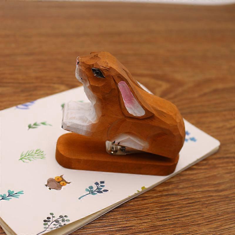 Cute Creative Handmade Woodcarving 3D Animal Flamingo Stapler Mini Wood Stapler Send staples Office Learning Desktop Decoration