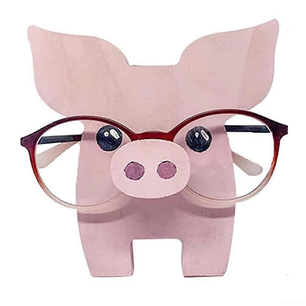Wooden Desk Glasses Holder in Cute Animal Shapes, Pig Design, Decorative Eyewear Stand, Home Office Accessory