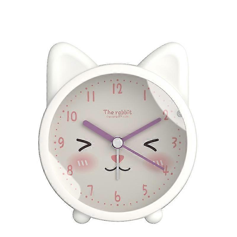 Cute Animal White Cat Alarm Clock Silent Non-ticking Quartz Desk Bedside Alarm Clock For Kids With Batteries