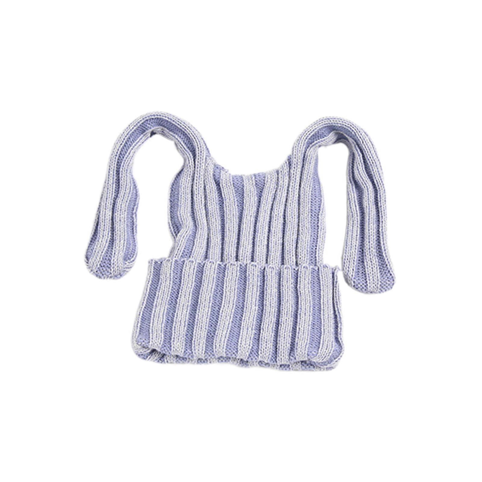 Cute Girls Rabbit Ear Shape Hat Winter Student Outdoor Cycling Skiing Climbing Hat Cold Weather Keep Warm Beanie Hat Purple