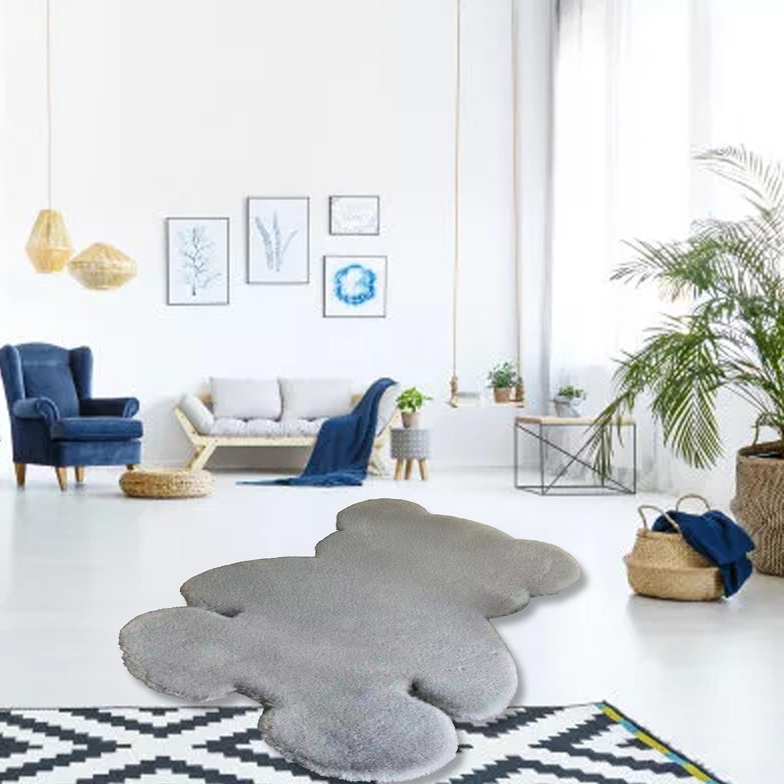 Cute Bedroom Rug Soft Bear Shaped Shaggy Floor Mat for Kids Teen Girls Room Floor Living Room Gray 45x60