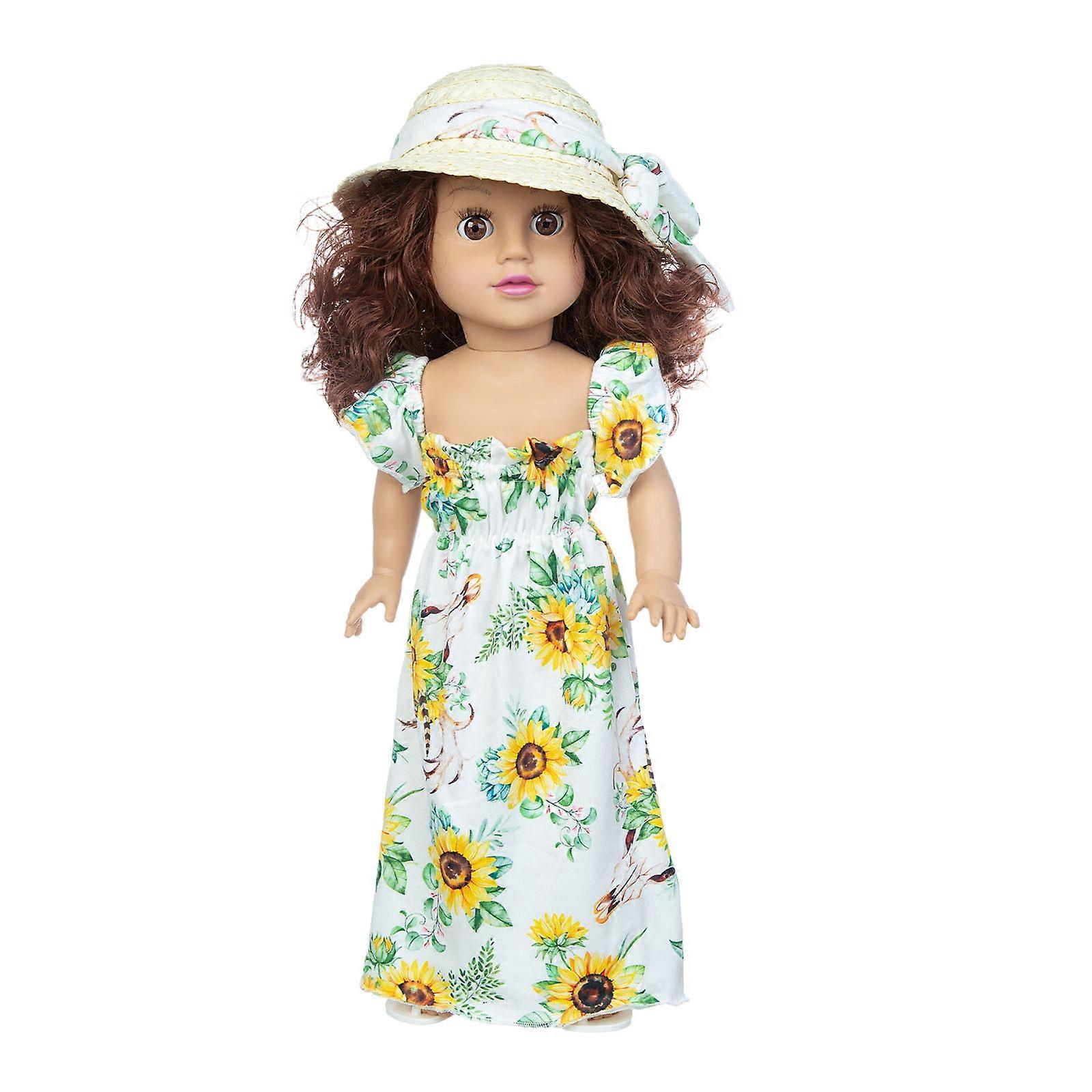 Cute Curly Hair Doll Printed Dress Princess Doll Vinyl Doll Children Toy CM pu3913