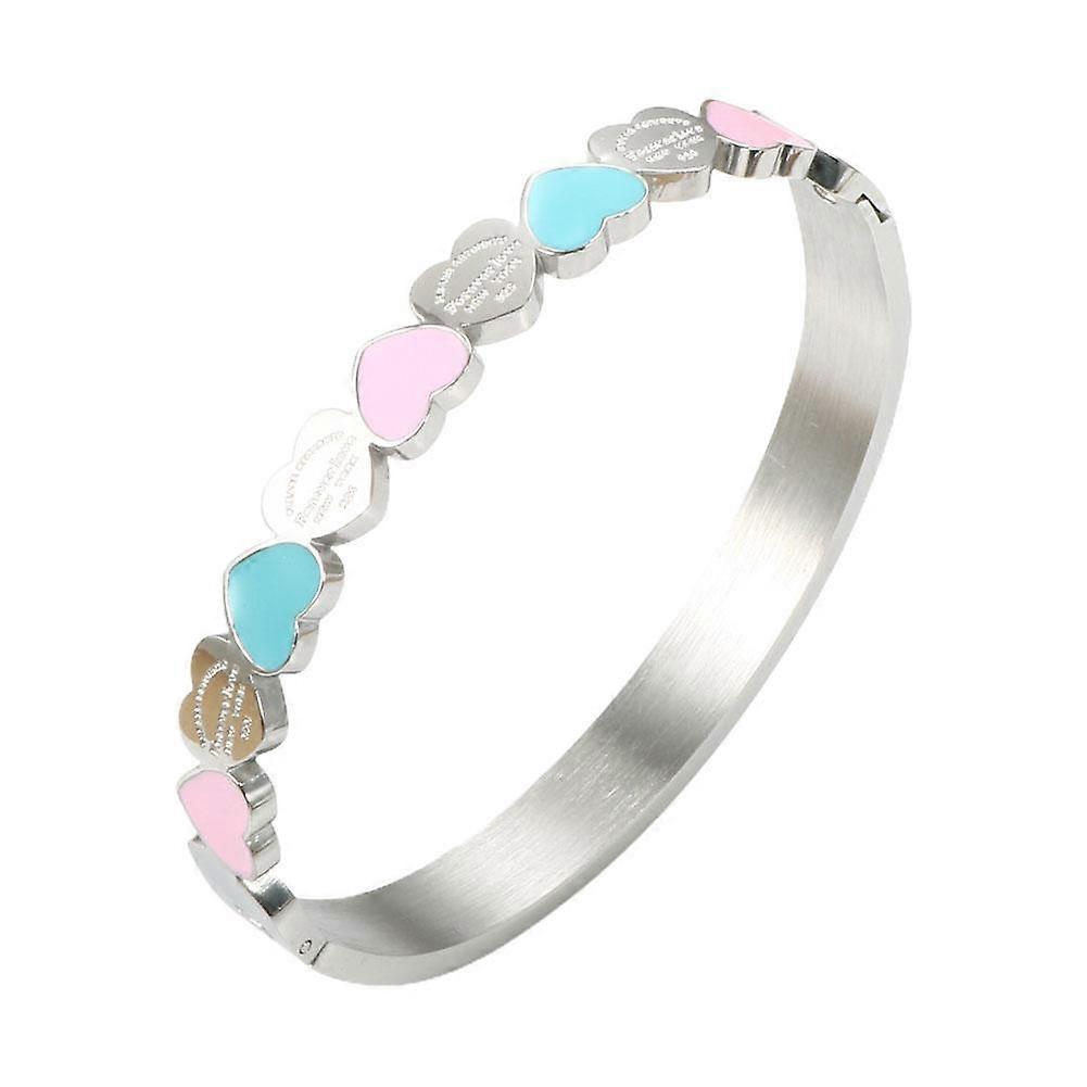 Cute Love Heart Titanium Steel Bracelet Lucky Cuff Bangles Women Girls