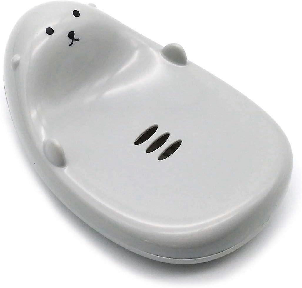 Cute Cartoon Animal Soap Box Bathroom Creative Plastic Water Drain Soap Rack Washing Sponge Holder Concise Style (Gray)