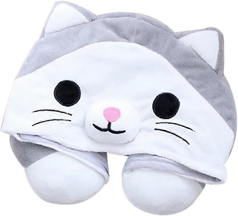 Cute Cartoon Animal 2 in 1 U Shaped Neck Pillow with Cute Onesie Cartoon Cap Cozy Travel Cushion Head Stress Relief Airplane Car Office for Warmth and