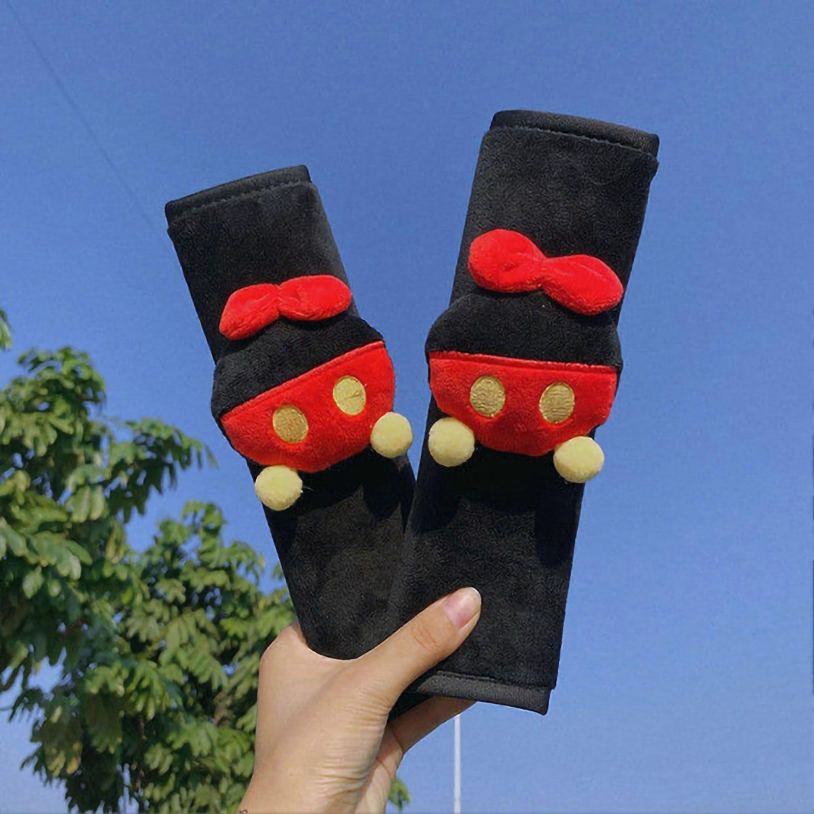 Cute Cartoon Car Seat Belt Shoulder Pad Soft Plush Safety Belt Cushion Cover for Auto Red