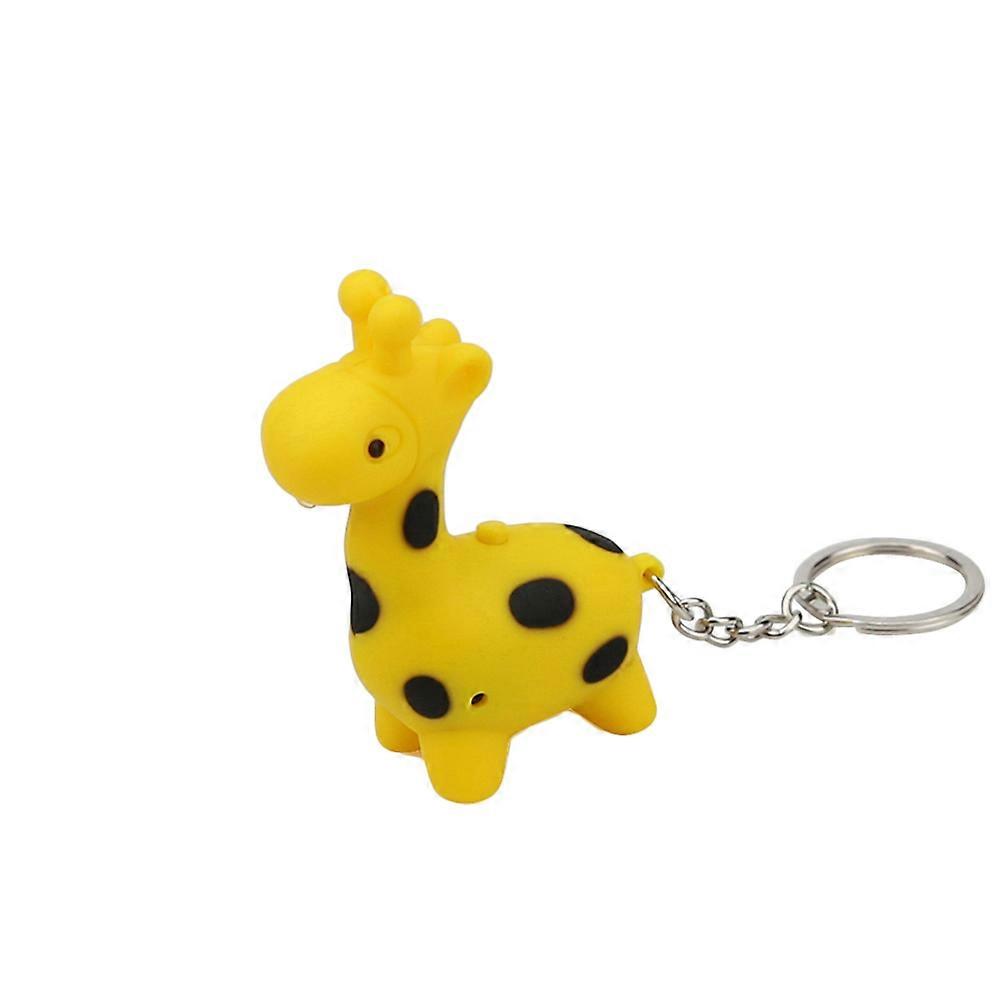 Cute Cartoon Deer LED Sound Key Chain Key Ring DIY Decoration Handbag Decor Gift (Yellow)