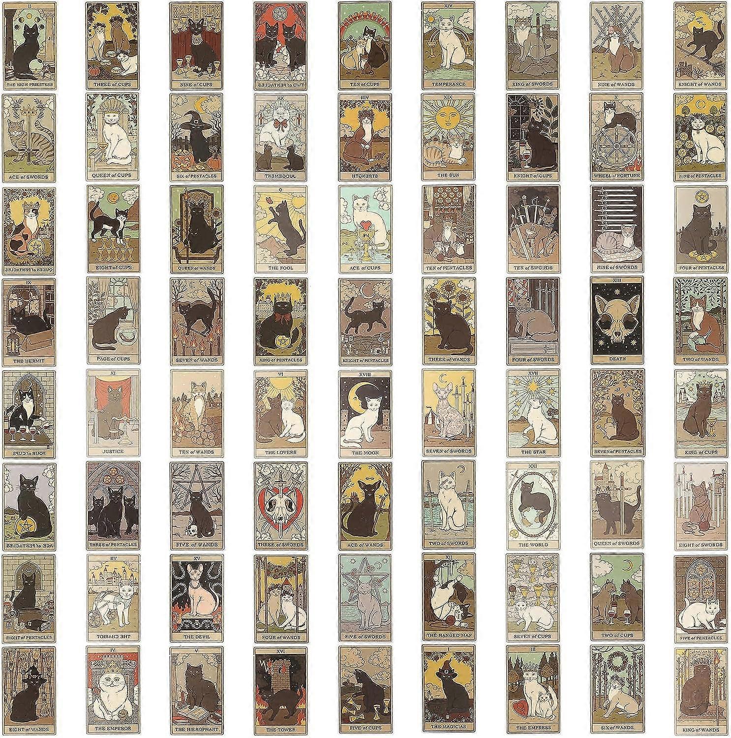 Cute Cat Tarot Stickers, 72 Pcs Mysterious Cartoon Cat Tarot Decals Waterproof Vinyl Vintage Stickers Graffiti Decals for Water Bottle Guitar Luggage