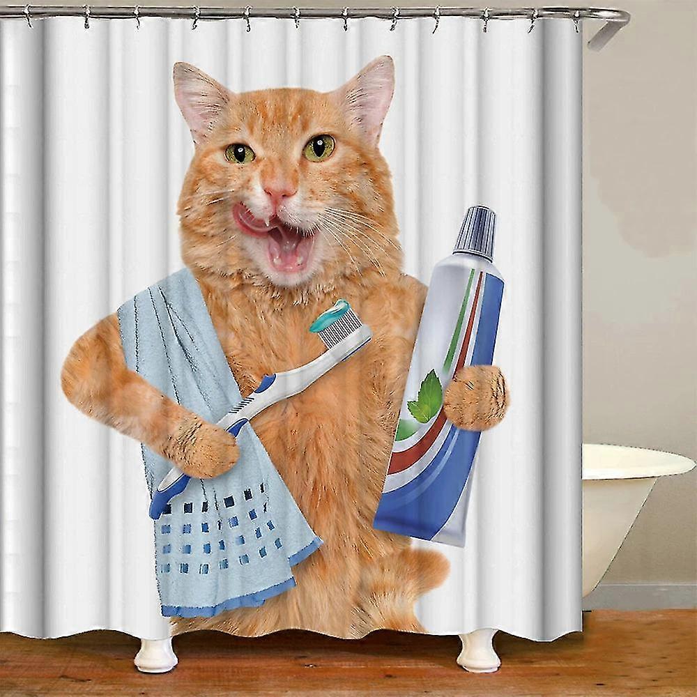 Cute cat animal waterproof polyester shower curtain with hooks for bathtub bathroom screens home decor large size wall cloth