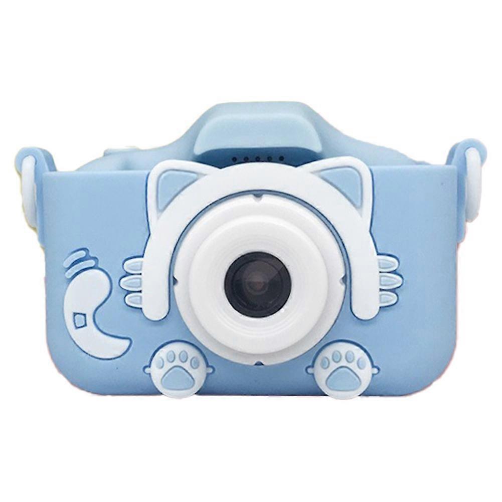 Cute Cat Children Cameras Silicone Cases Dual Cameras Kids Photography HD Video Camera Toys Festivals Gift Blue