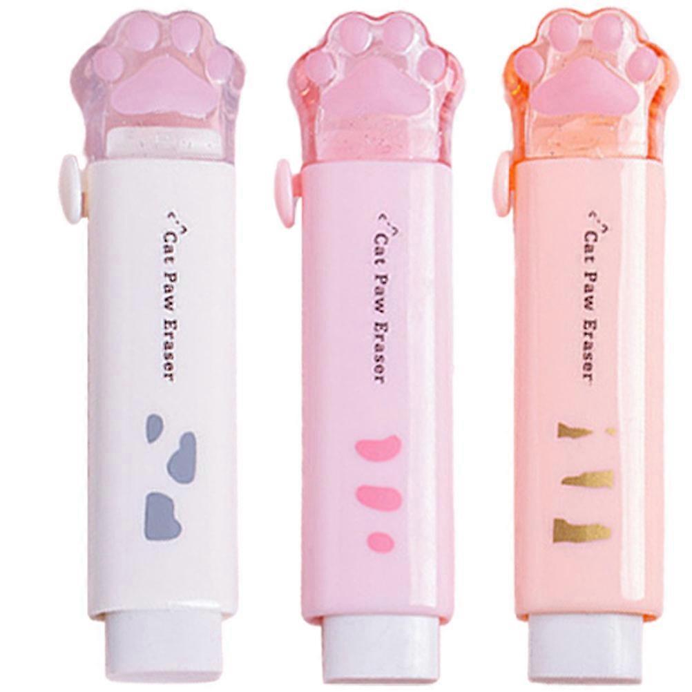 Cute Cat Paw Retractable Erasers Set Kawaii 3Pcs Mixed Color for School and Office Supplies
