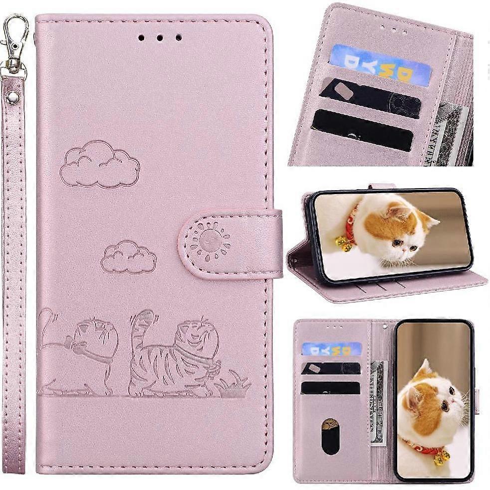 Cute Cat RFID Blocking Wallet Phone Case for iPhone 14 with Card Slots ,Wrist Strap & Kickstand Compatible with iPhone 14