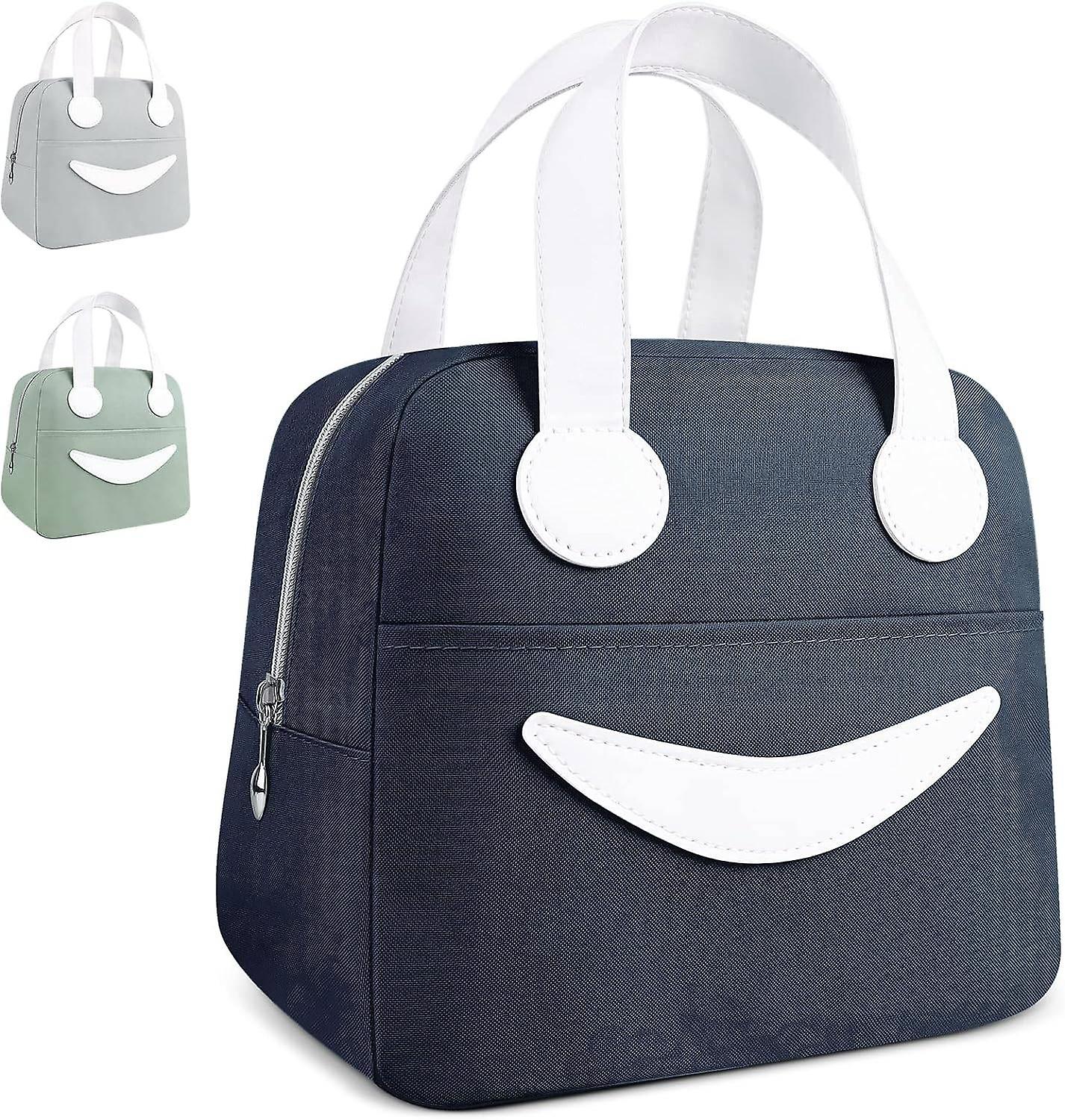 Lunch Box Insulated Lunch Bag with Cute Smile Face, Durable Reusable Work Cooler Tote Bag for Adult