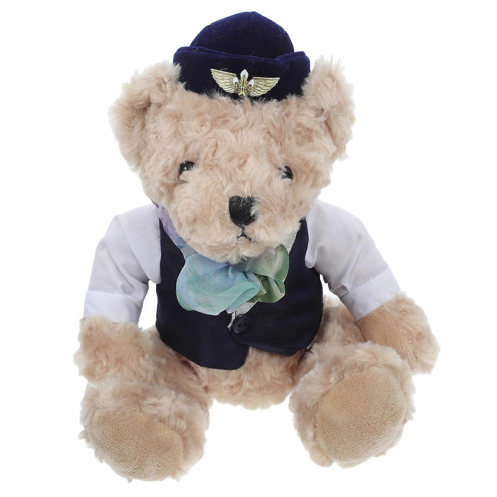 Cute Airline Stewardess Bear Plush Doll Soft PP Cotton Decorative Stuffed Animal for Home Blue 10.5 inches