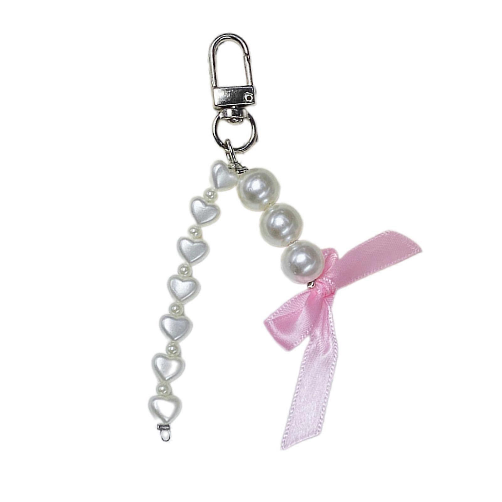 Cute Bowknot Pearl Beaded Keychain Pendant Lovely Hangings Decorations Keyring Charm for Purse Bag Backpack Handbag Light Pink