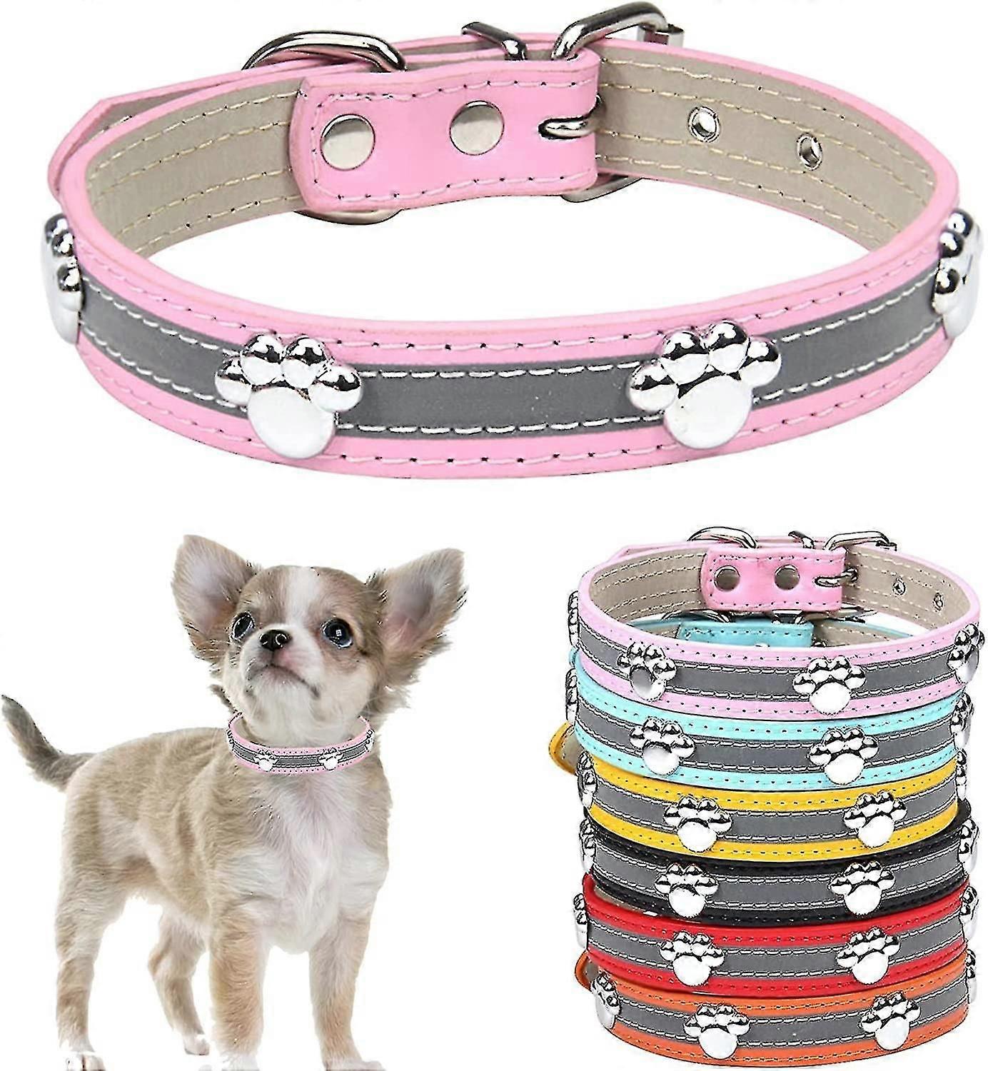 Reflective Dog Collar With Cute Paw Rivet Studded Funny Soft Pu Leather Adjustable Puppy Dog Collars For Small Medium Large Dogs Cats Pink X-large (pa