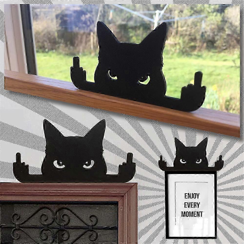 Cute Funny Wooden Middle Finger Black Cat Ornament For Home Room Window Table Desk Shop Decoration
