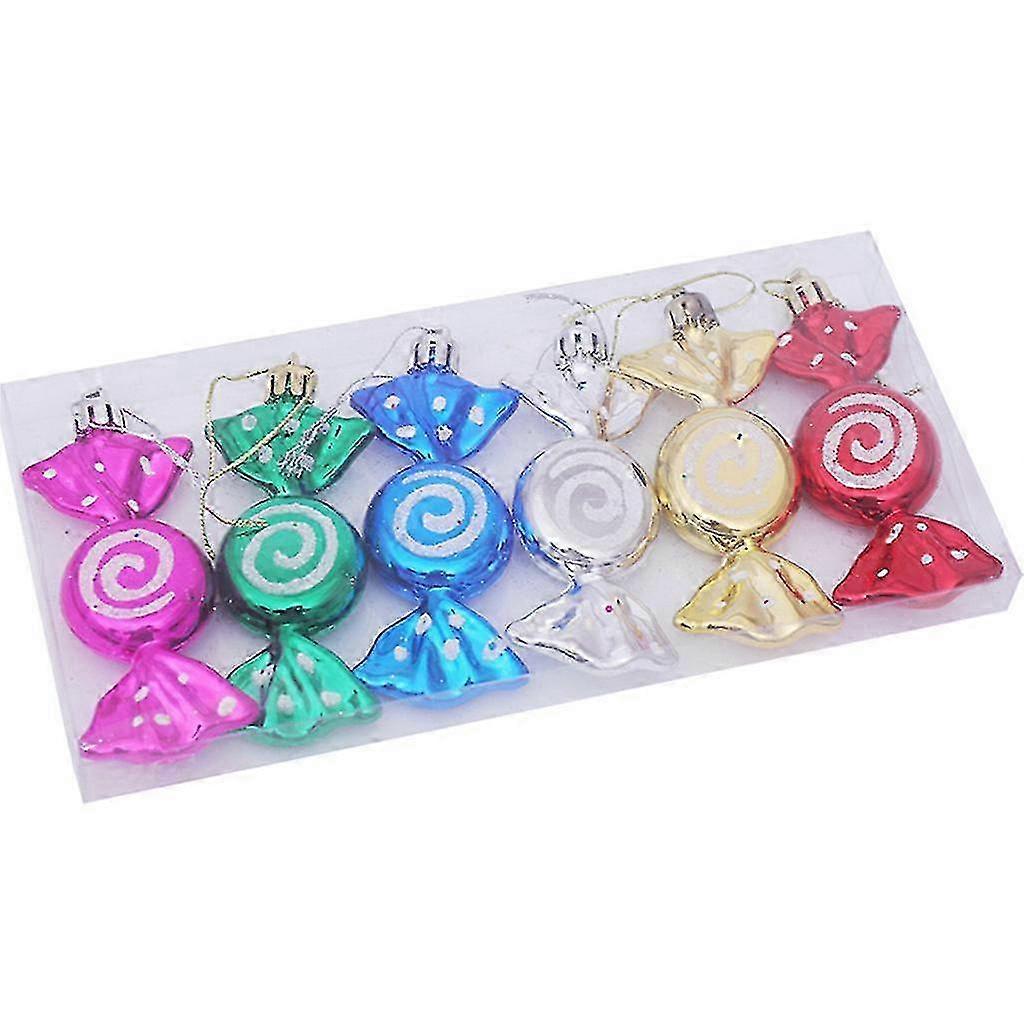 Cute 6x Electroplate Painted Candy Props Xmas Tree Lollipop Pendant Decor Party