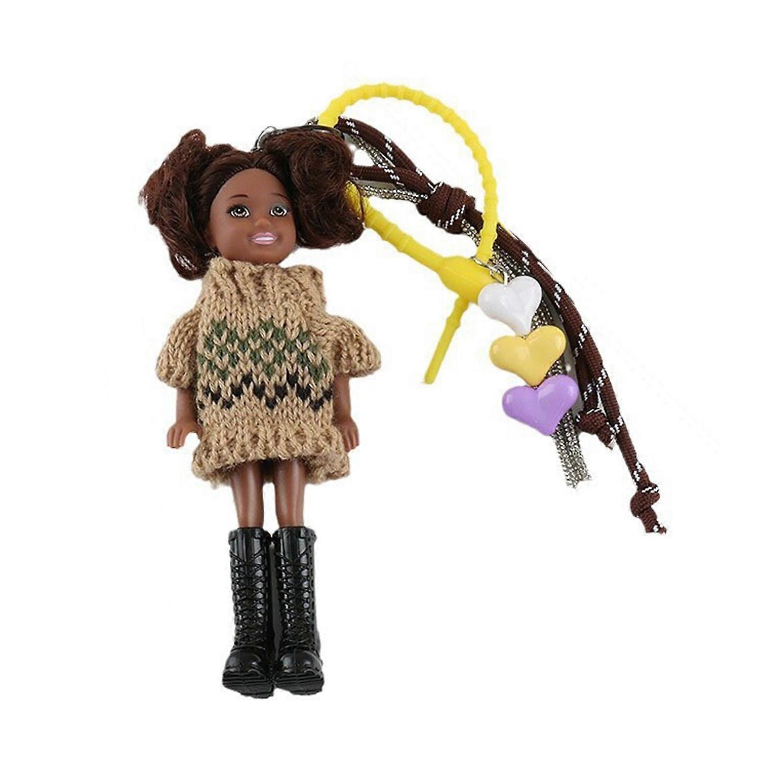 Cuteness Knitted Doll Keychain Charm Soft Handmade Fabric Keyrings Plastic Texture Bag Pendant for Woman and Girl Khaki