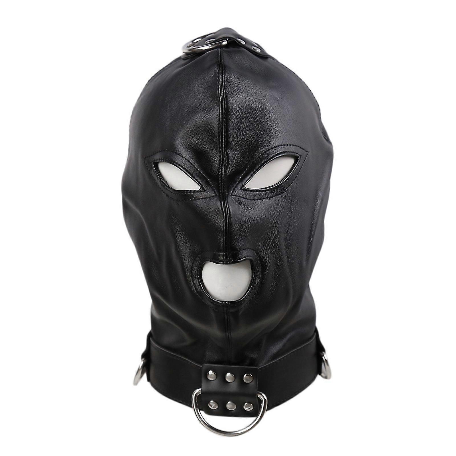 Hollow Out Eyes Mouth Full Face Masks Leathers Head Masks Lacing Design Cosplays Head Hood Halloween Costumes Headgear Black