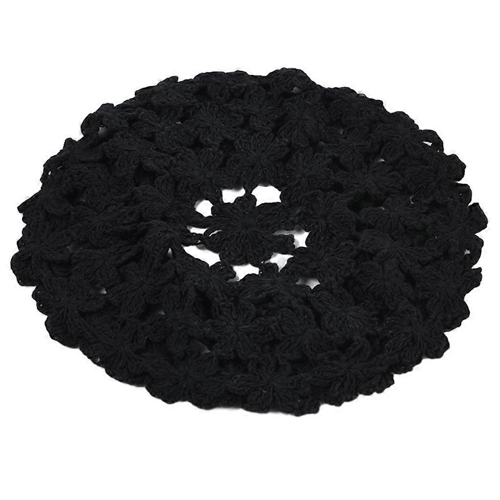 Hollowout Knitted Flower Hat Girl Beanies Hat Fashion Spring Travel Beret Hat Female Pullover Hat Vacation Crocheted Hat Black