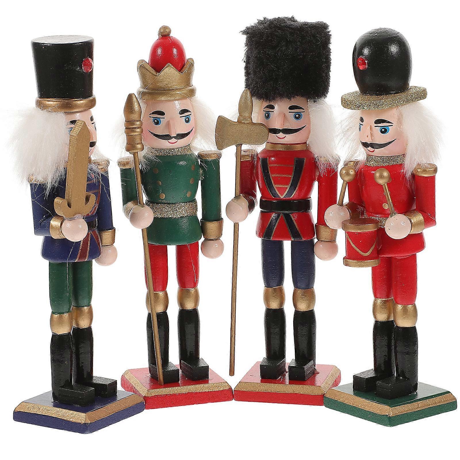 Nutcrackers Ornaments Wooden Nutcracker Ornaments Christmas Decoration Figures Home Decor 4Pcs