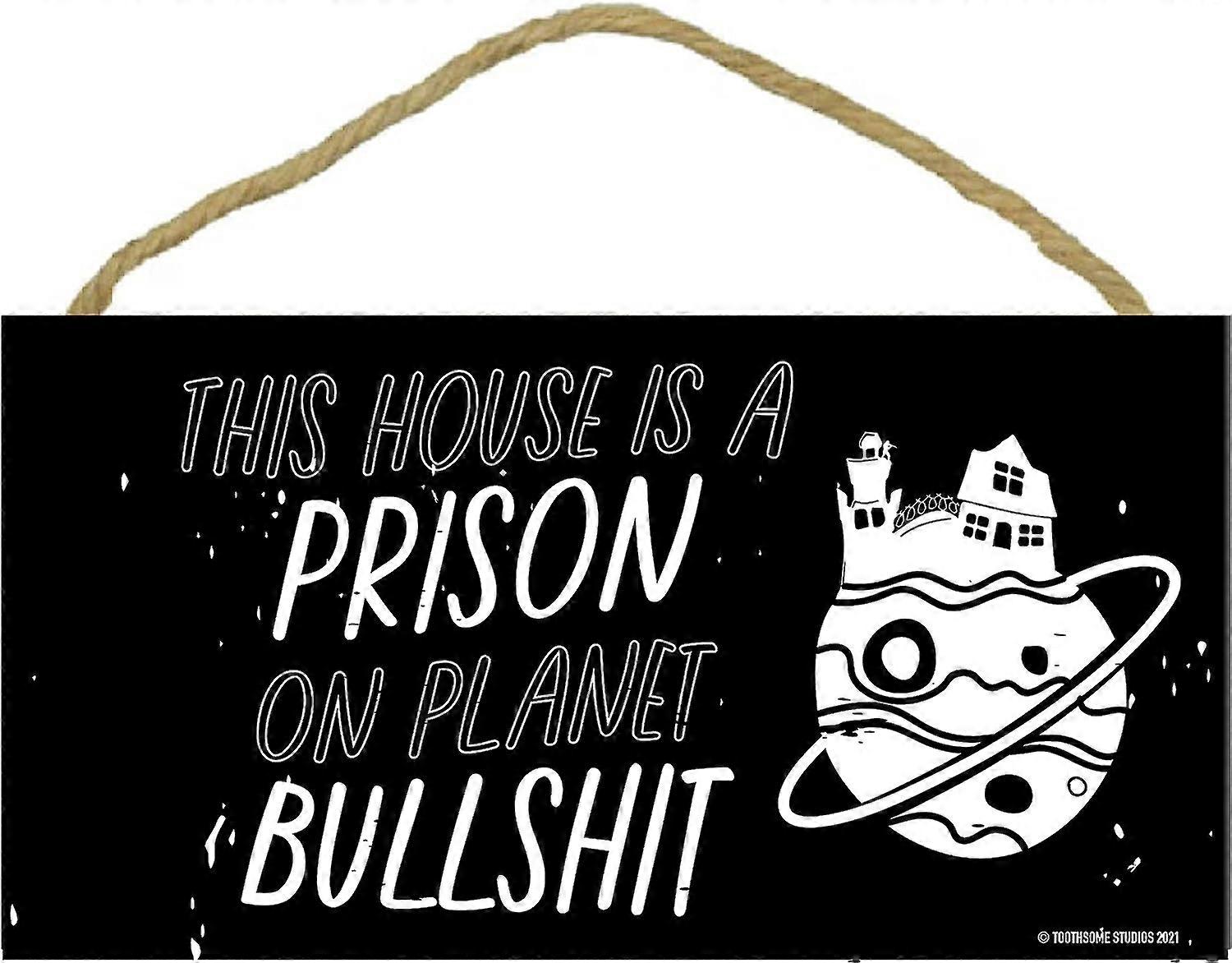 This House Is A Prison On Planet Bullshit 11.5" x 6'' Funny Wood Sign