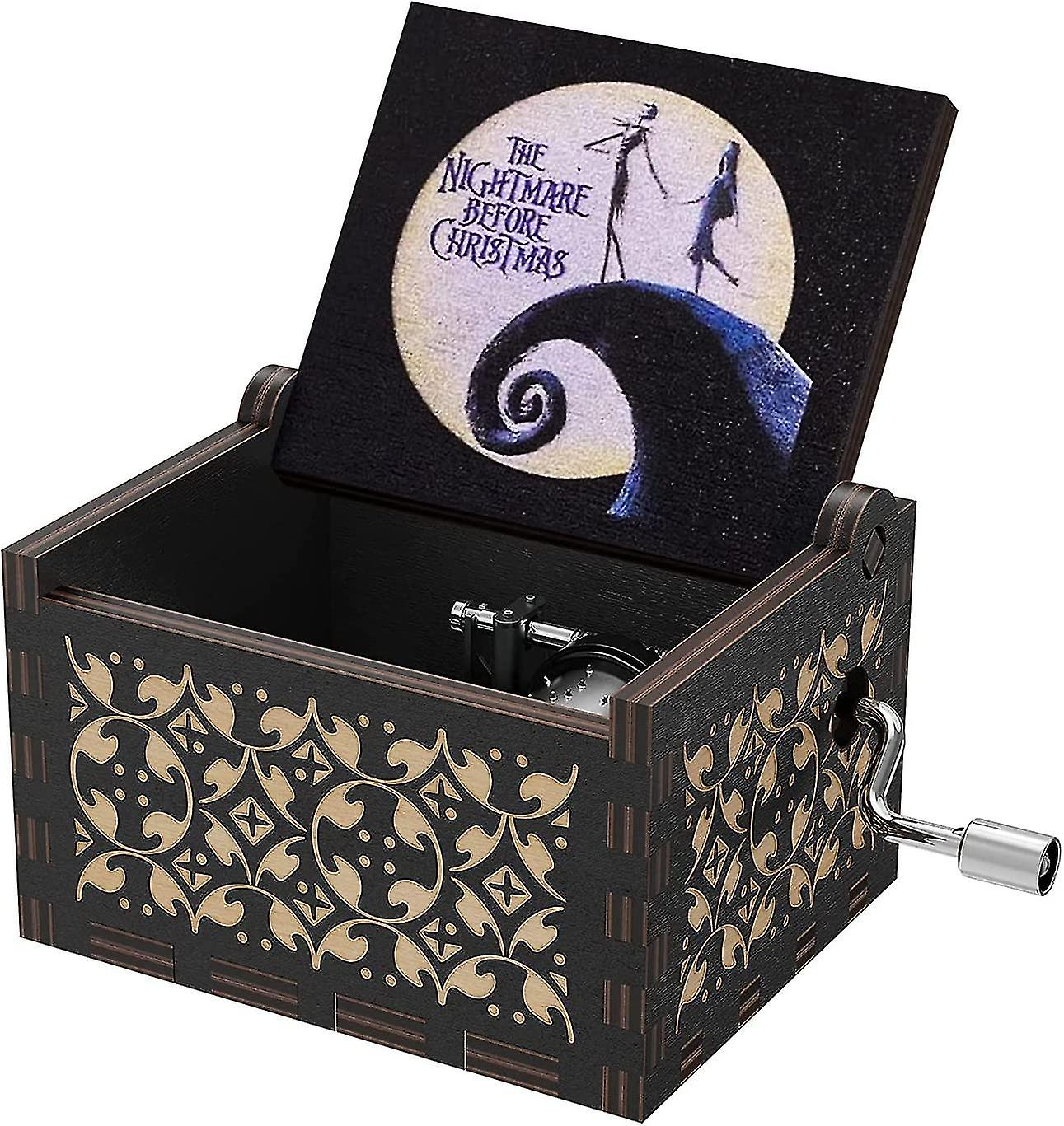 This Is Halloween Tune Wood Music Box The Nightmare Before Christmas Hand Crank Engraved Vintage Wooden Music Box Gifts For Kids/girlfriend/women/daug