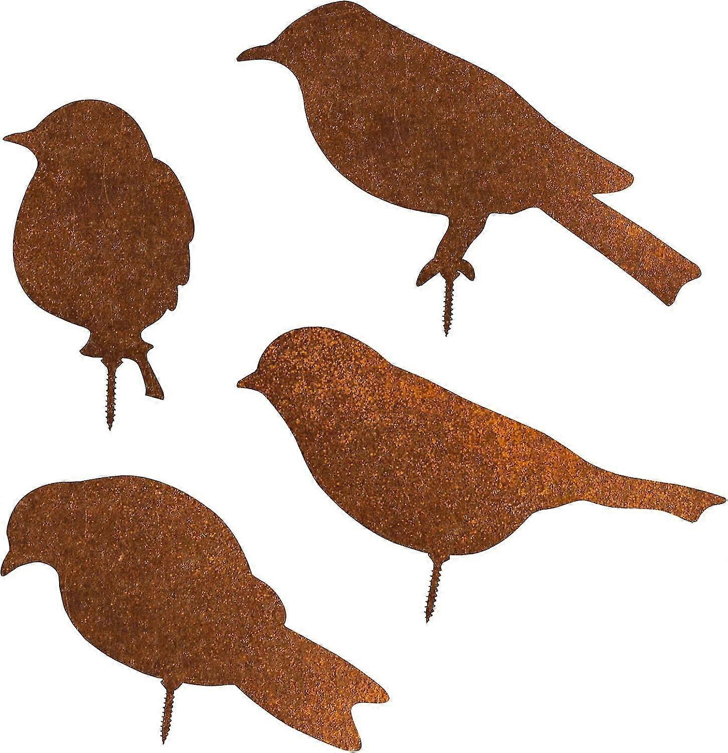 Rusty Metal Garden Stake, 4PCS Rusty Birds with Screws, Rusty Metal Garden Yard Art, Metal Birds Bird Ornaments Wall Decoration for Balcony and Patio