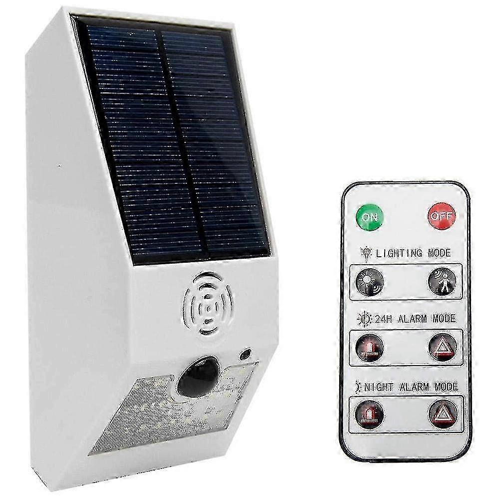 solar alarm light suitable for various outdoor uses, equipped with motion detector and remote control, white color