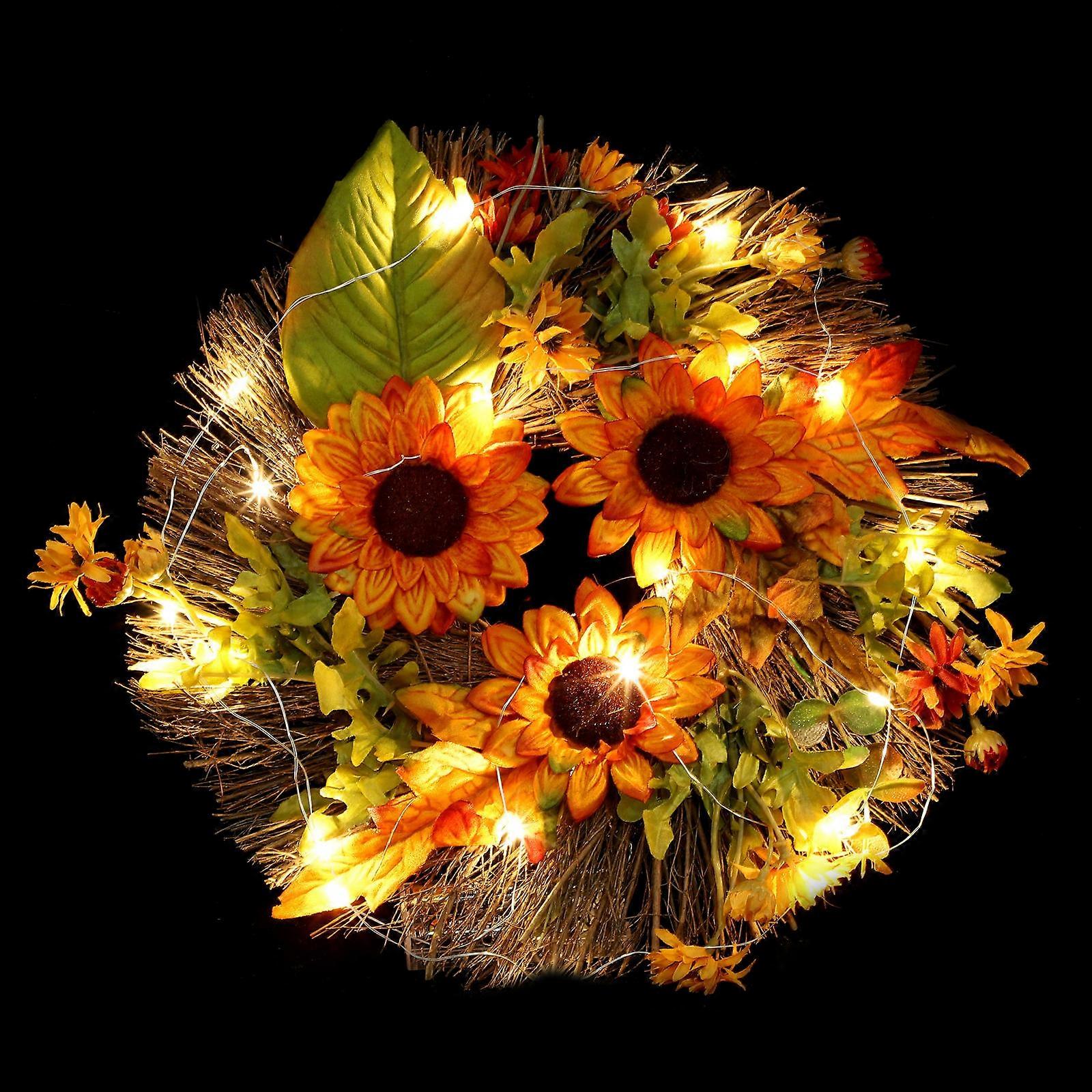 Glowing Wreath Decor with Artificial Sunflowers for Adornment in Assorted Colors and Lightweight Design 12.5 Inches