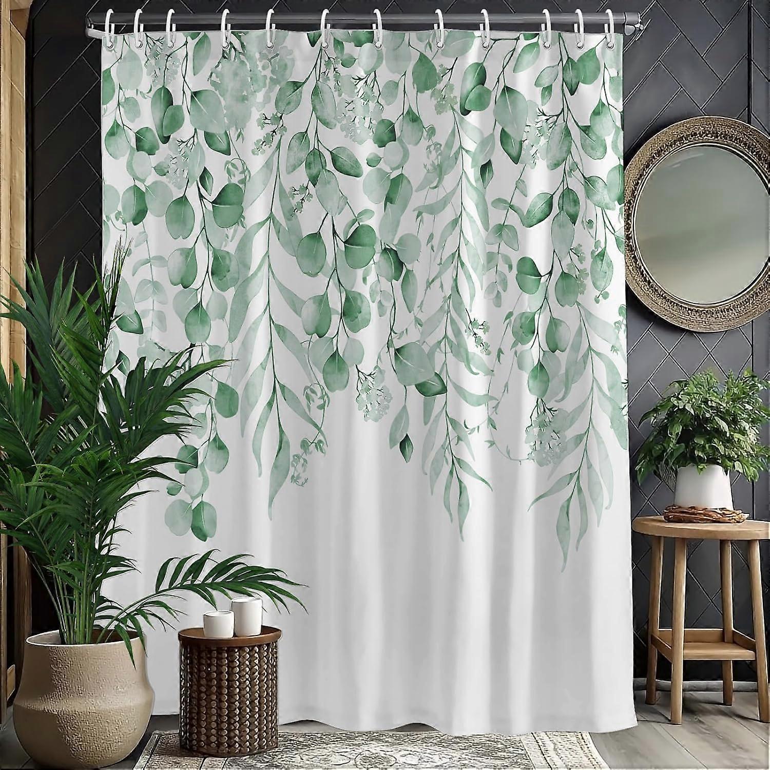 Refreshing Pastoral Style Mint Green Eucalyptus Shower Curtain, Watercolor Plant Leaves with Floral Bathroom Shower Curtain Bathroom Decor 72''x 72''